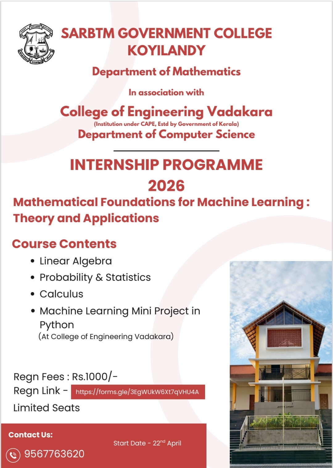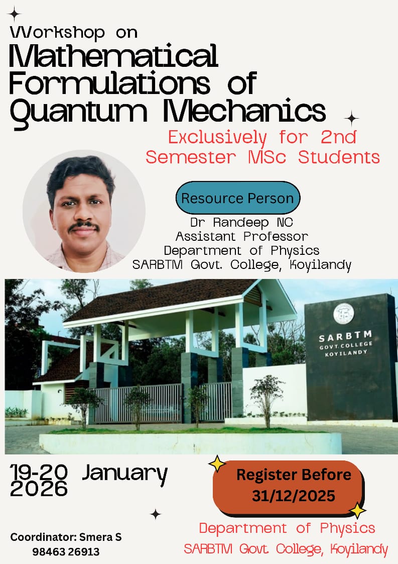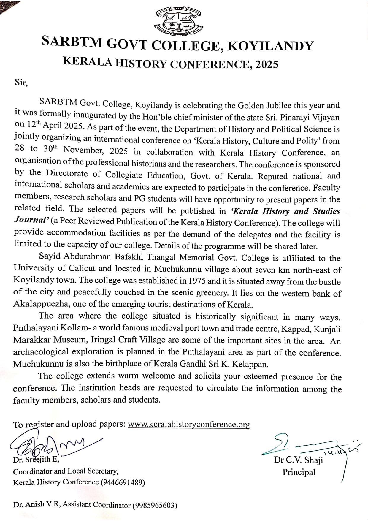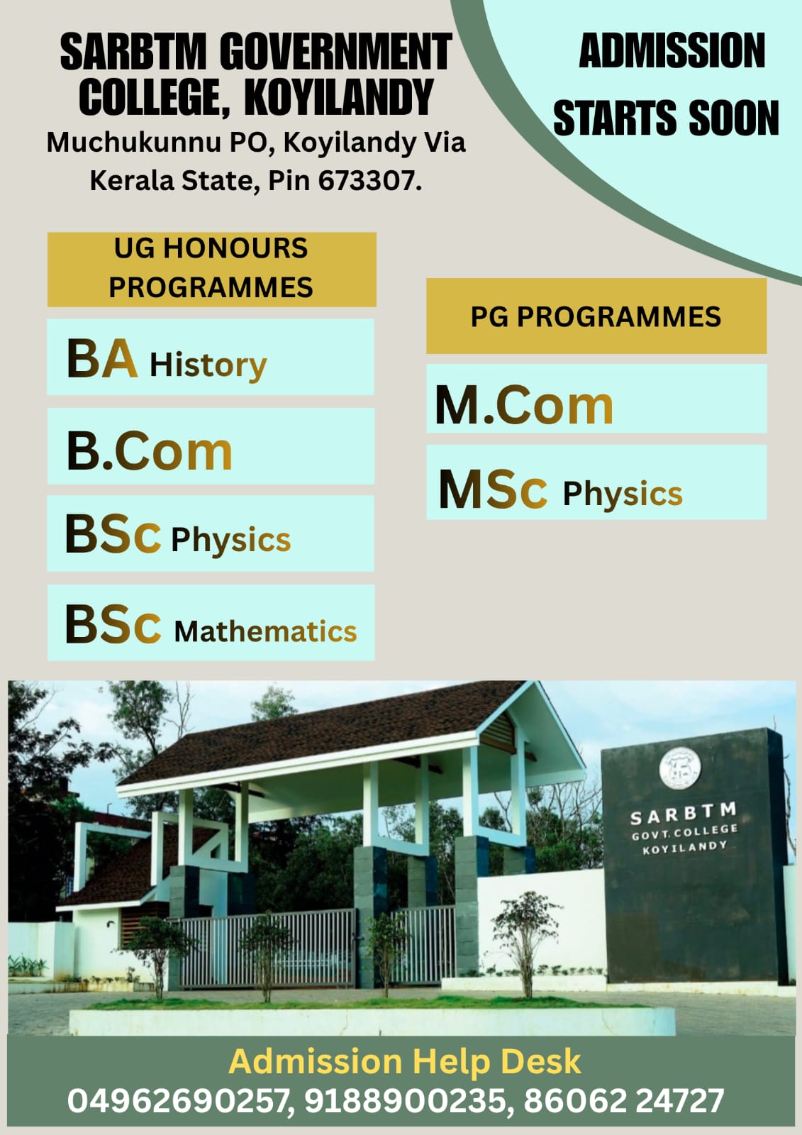 " Sayyid Abdul Rahman Bafakhy Thangal Memorial (SARBTM) Govt. College, Koyilandy was established in 1975. It was named after the great social reformer Sayyid Abdul Rahman Bafakhy Thangal who hailed from Koyilandy. The motto of the college “Yatra viswam bhavatyeka needam” in translation means&nb...