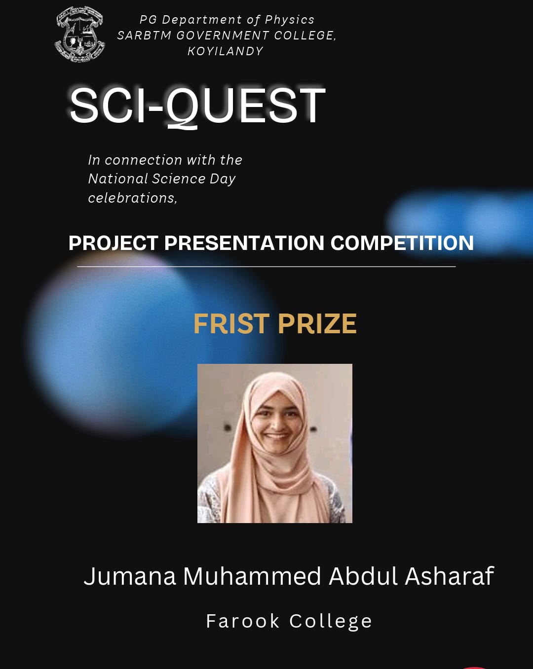 ARCHANA MEMORIAL FOOTBALL TOURNAMENT(WOMENS) *WINNERS* *PHYSICS DEPARTMENT* COLLEGE UNION & PHYSICAL EDUCATION DEPARTMENT
