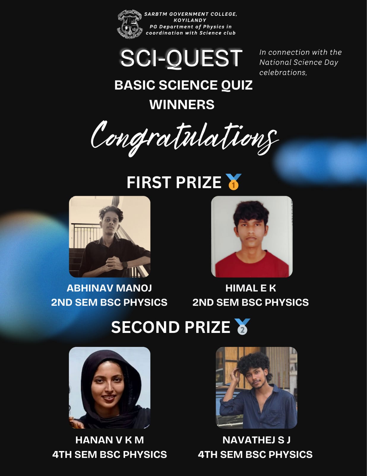 ARCHANA MEMORIAL FOOTBALL TOURNAMENT(MENS) *RUNNERS UP* *PHYSICS DEPARTMENT* COLLEGE UNION & PHYSICAL EDUCATION DEPARTMENT